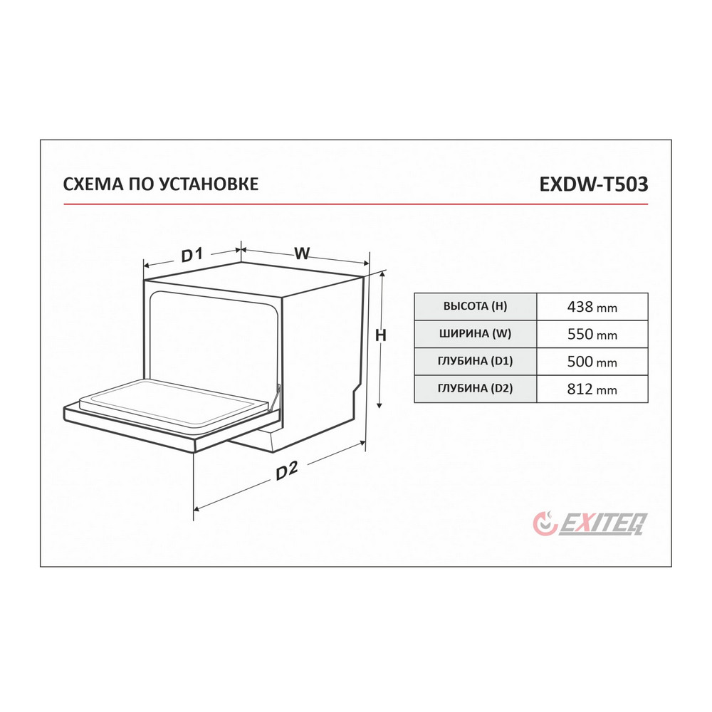 Главная Каталог Техника для кухни Посудомоечные машины Посудомоечные машины отдельностоящие Посудомоечная машина EXITEQ EXDW-T503